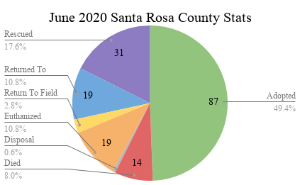2020 Santa Rosa County Animal Services StatisticsDec 3, 20241 min readRated NaN out of 5 stars.ANNUALDECEMBER 2020NOVEMBER 2020OCTOBER 2020SEPTEMBER 2020AUGUST 2020JULY 2020JUNE 2020MAY 2020APRIL 2020MARCH 2020FEBRUARY 2020JANUARY 2020